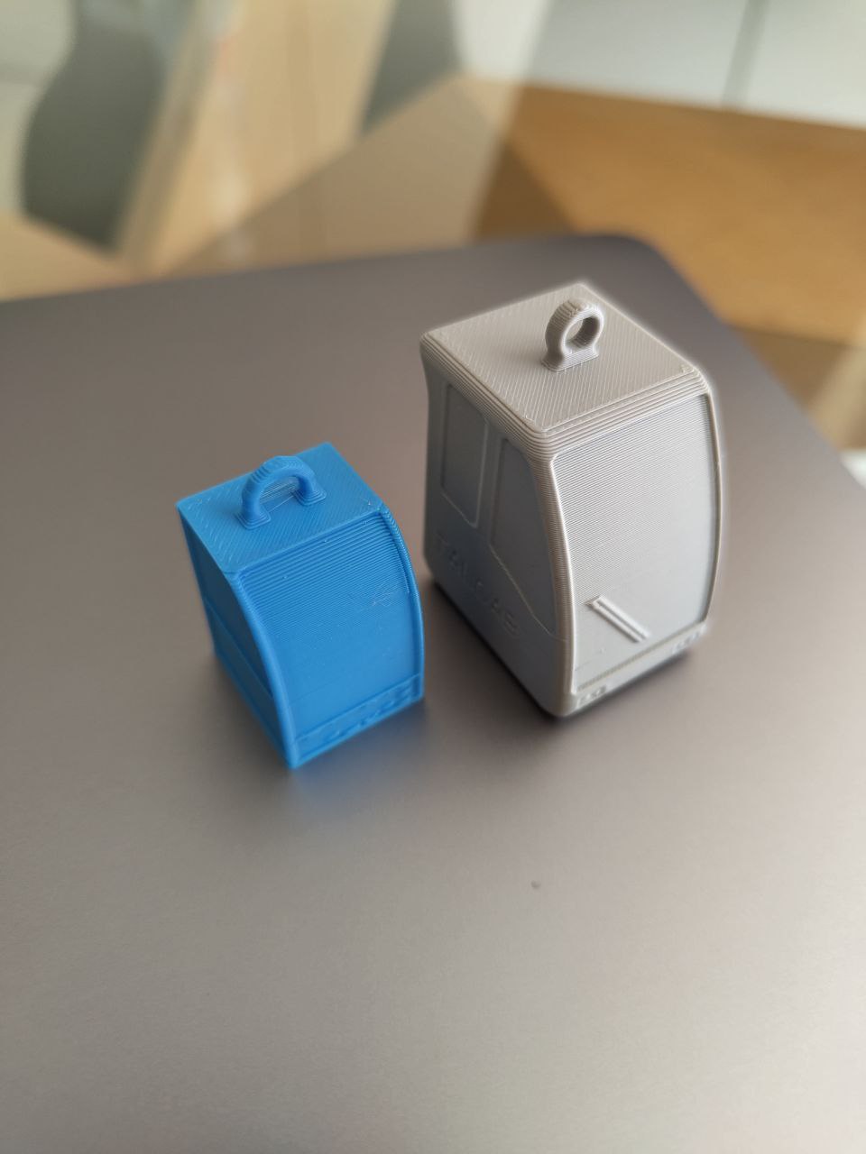 L’obiettivo era creare 600 portachiavi personalizzati a forma di cabina, completi di logo inciso.