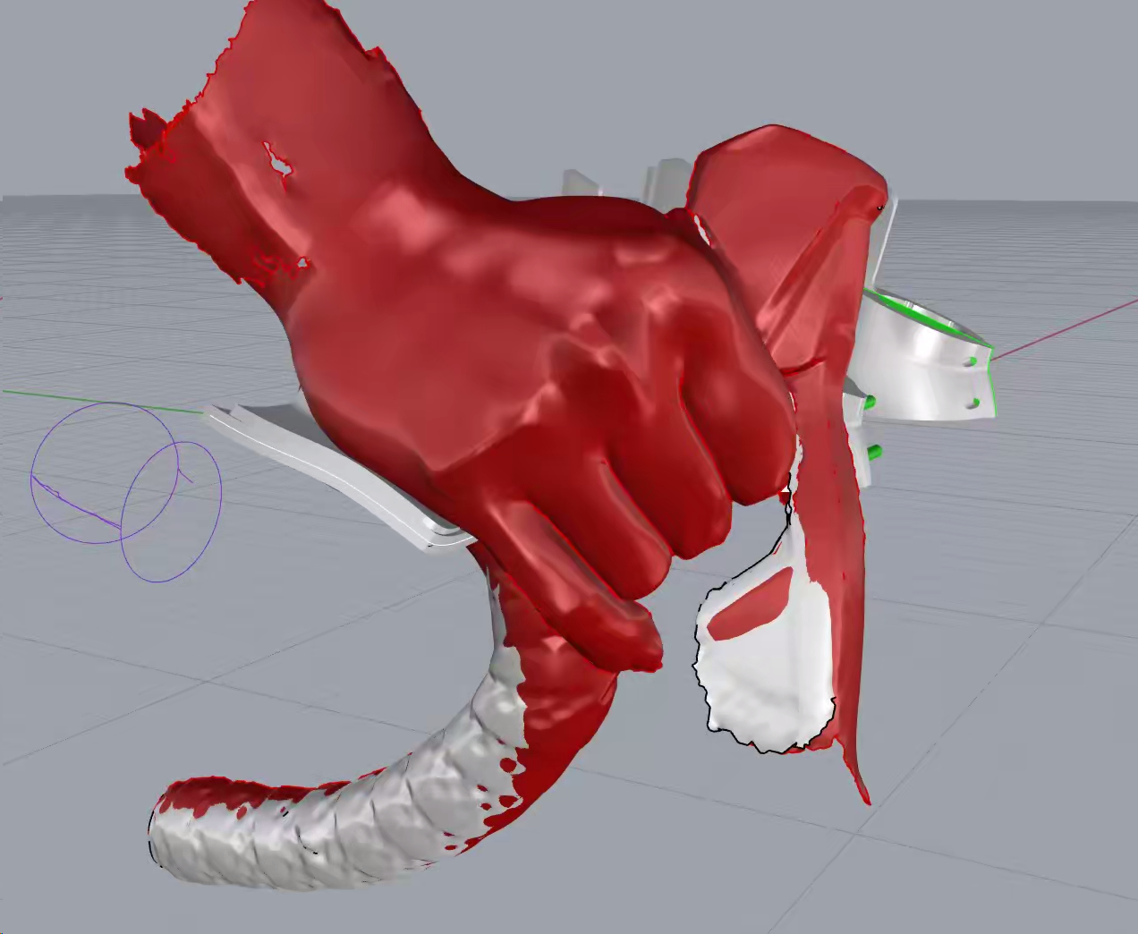 Scansione 3D del manubrio e della mano nella posizione naturale di appoggio